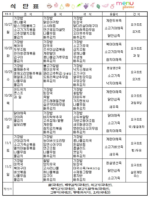 11¿ù ù° ÁÖ ½Ä´Ü